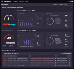 The XecGuard and XecART dashboards enable enterprise AI governance with real-time guardrails, automated red teaming, and flexible deployment via on-premises environments or cloud-based APIs.